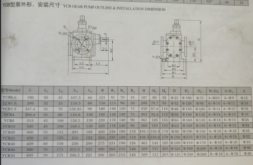 YCB系列圆弧齿轮泵泵头安装尺寸图