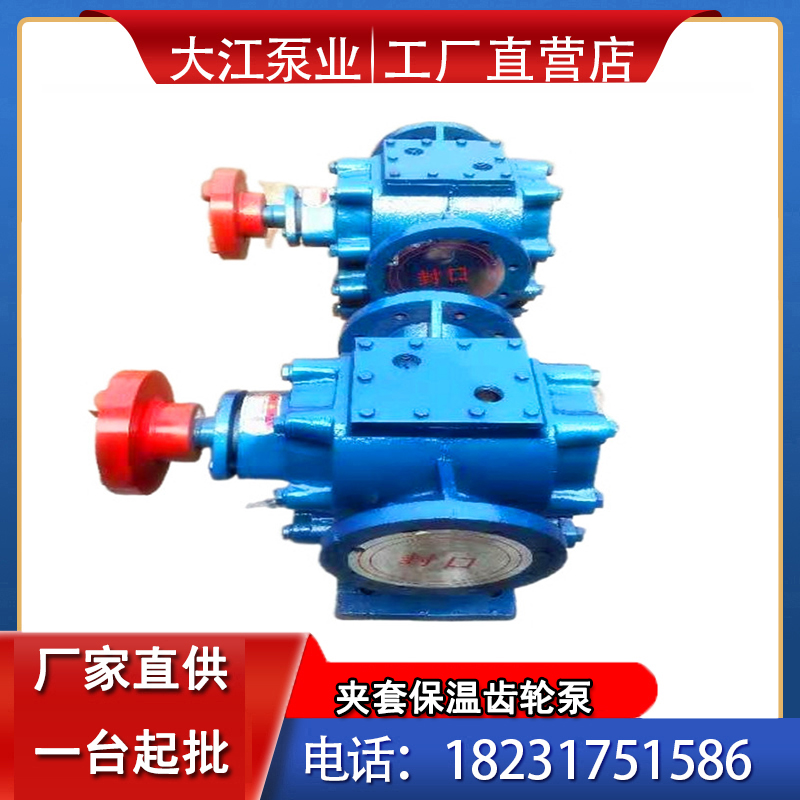 该沥青泵的泵体设有空心夹层,并设有进出口法兰,可用于导热油、蒸气、热水等媒体对输送的液体和泵进行加热保温及冷却。泵有泵体、前盖、密封盖、压盖、密封、齿轮、主轴、被轴、挡板、轴承、夹套层、夹套盖、法兰等零部件组成。